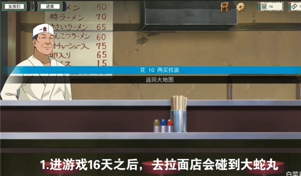 好感度达到7之后,井野会表现出抗拒的态度。建议尽量更换身上的衣物,并且需要前往天天的店铺购买变身术。如果资金不足,可以去找卡卡西接取任务,在执行任务时注意不要主动翻动任何物品(即使出现相关选项也不要操作)。后续剧情会解锁影分身能力,利用影分身,你可以在一个白天同时派遣三个分身去三位女主那里帮忙做事,而你自己则可以自由安排,比如去一乐拉面馆试试能不能遇到大蛇丸。遇到他之后,经过一系列剧情发展,会触发收集鸣人血液的任务。