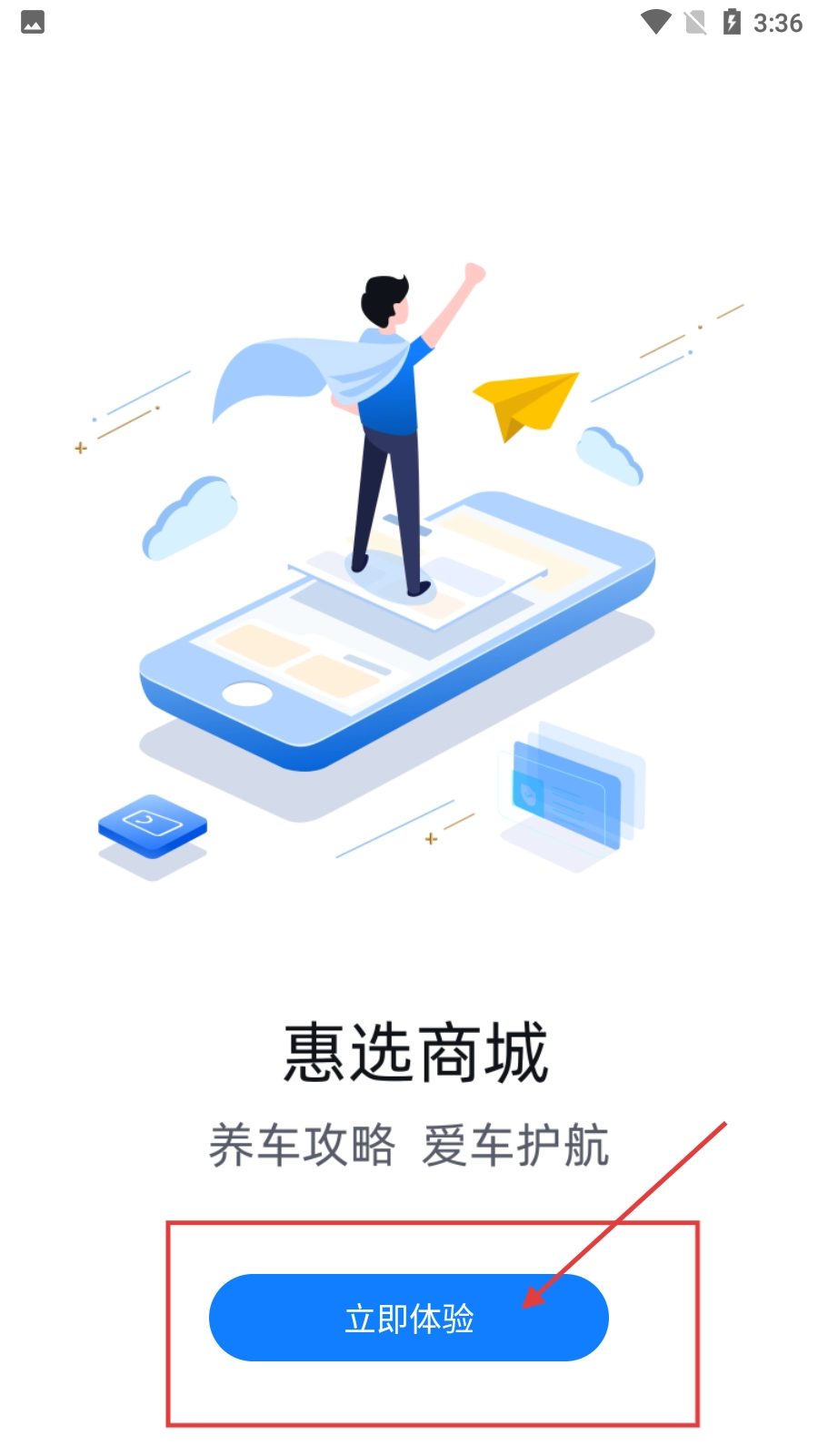 2、要是有【惠选商城】这个模块,大家可以点击【立即体验】进入其中,从而获取养车攻略之类的相关服务。