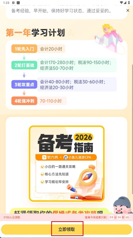 2、找到【备考指南-领取入口】,点击【立即领取-按钮】获取备考资料。