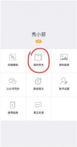 成功登录秀米后,在首页找到并点击“我的秀米”。