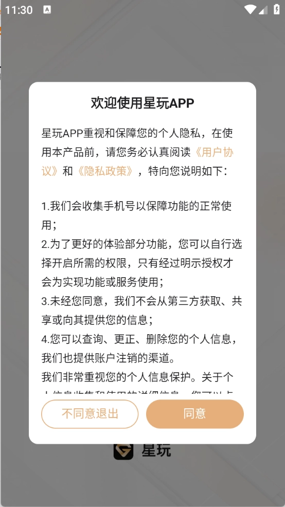 1、首先好星玩,查看并同意隐私政策与用户协议。