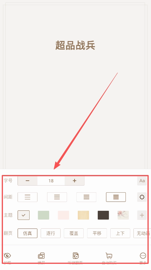 阅读过程中可随时打开设置菜单,字号以18为起始值支持自由调节,翻页效果则提供了多种动画选项供选择。