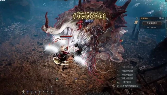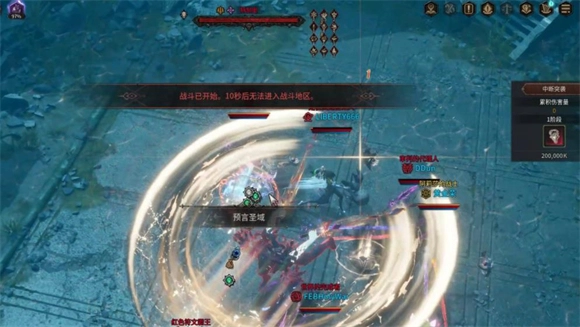 6、在突破扭曲空间机制后到boss空血前,它还会释放一轮第二阶段的技能,按之前的方法躲避即可。当boss空血时会被强制锁血在1%,此时无法将其击杀,屏幕会出现提示——boss即将发动最后攻击,也就是临死前的狂暴。随后boss会移动到场地中间,从三种全屏技能里随机选两种释放: