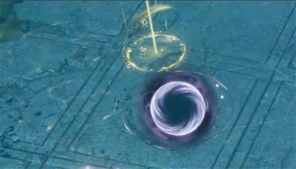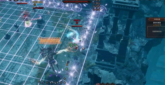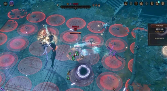 3、第一阶段临近结束时,boss会释放一个范围性技能,它会在场地中央蓄力,并锁定全场伤害最高的玩家;当听到“叮”的一声提示蓄力完成后,boss会向前释放一列剑雨,紧接着还会朝同一方向释放覆盖半屏的范围剑雨。这个技能伤害属于中高水平,但躲避起来并不难,只要跑到boss的身后位置就可以了。