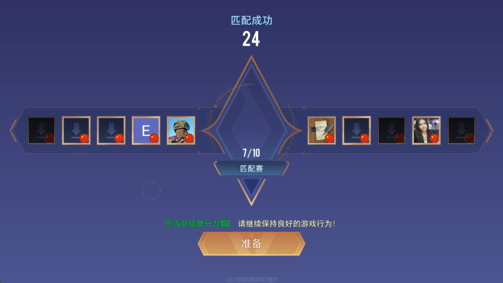 1、进入游戏后通过匹配来开始游戏。