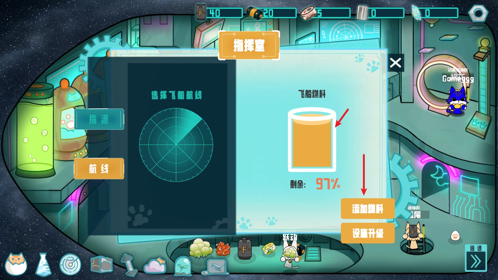 你的飞船内划分了丰富多样的功能区域,像生产区、加工区、学习区等一应俱全,这些区域可以协助你开展资源生产、猫咪培养等活动,进而提升你的战斗力。