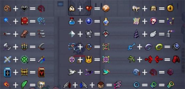 1、游戏中超武的合成方式如图所示,玩家只需收集相应的物品,即可快速合成出自己想要的超武。