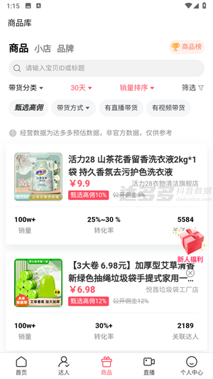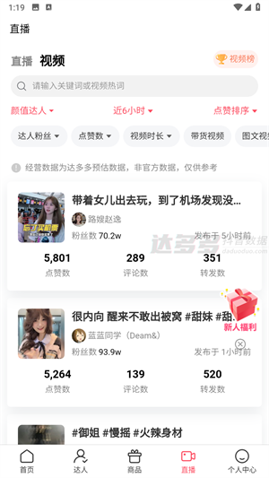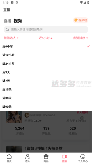 达多多作为专业的抖音数据分析平台,能让你随时随地在线查看抖音直播的数据分析情况,为你呈现全方位的直播数据。在这里,用户不仅能够发现众多爆款商品,还能通过直观且详细的数据展示,找到热门直播间。多维数据在此一一呈现,助你更便捷地查看数据榜单,了解热门商品信息。这是一款专为抖音直播达人精心打造的实用工具。