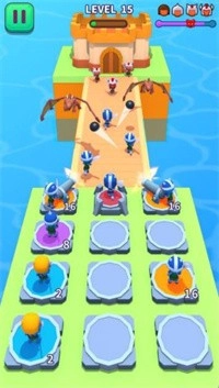 3、每一关都会遇到难度各异的城堡,合并的小兵数量越多,对敌人造成的伤害就越大。