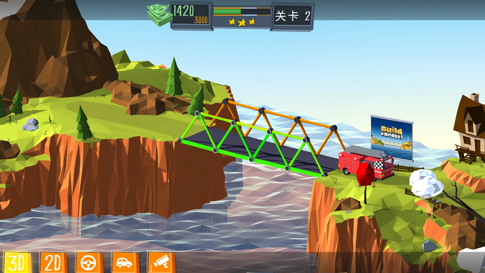 桥梁建造者(Build a Bridge!),又称桥梁建造师,是移植自Steam同名游戏的手机版本,这是一款充满趣味的桥梁模拟建造游戏。在游戏里,你将化身桥梁设计师,针对不同的场景与通车状况来规划桥梁。你得充分运用自己的知识进行设计,确保桥梁安全稳固,让车辆能顺利通行!游戏的整体画面清新又精致,场景设计十分逼真,再加上益智烧脑的关卡,绝对能给你带来超精彩的体验!