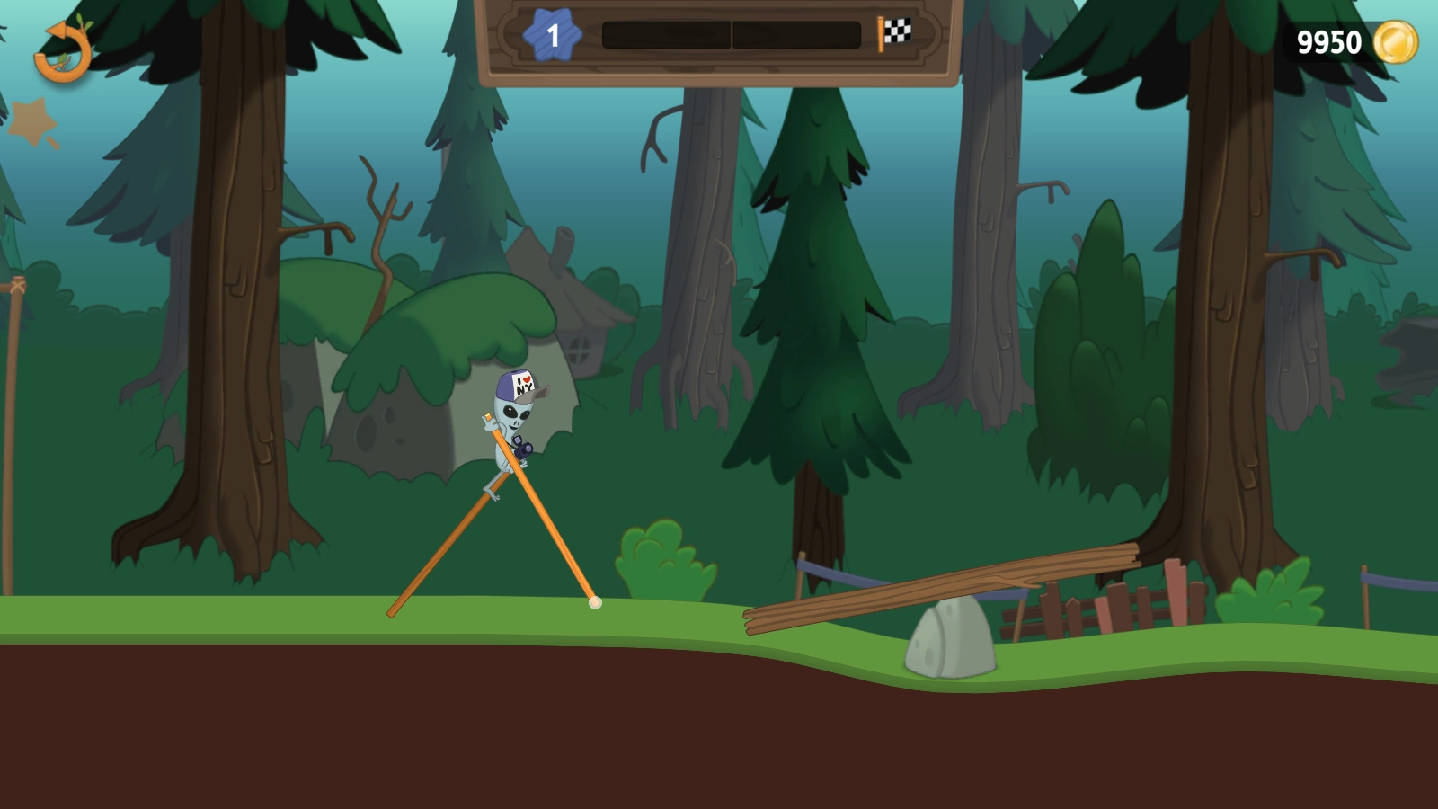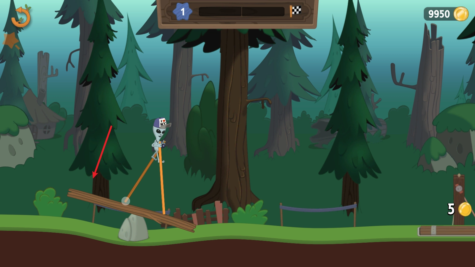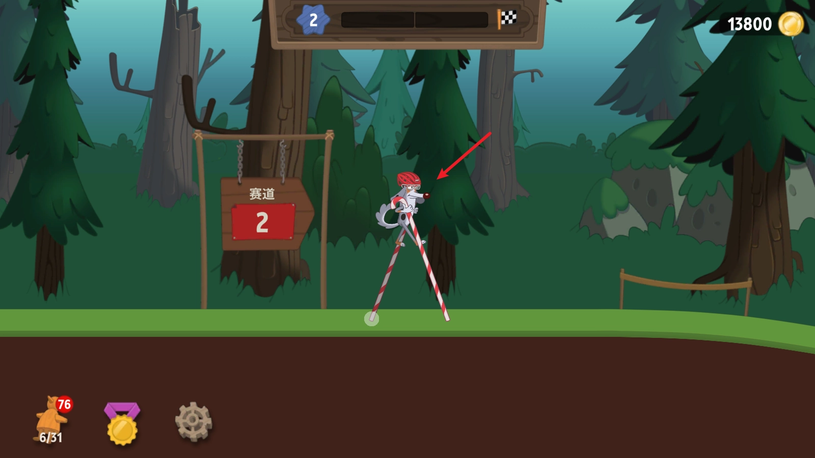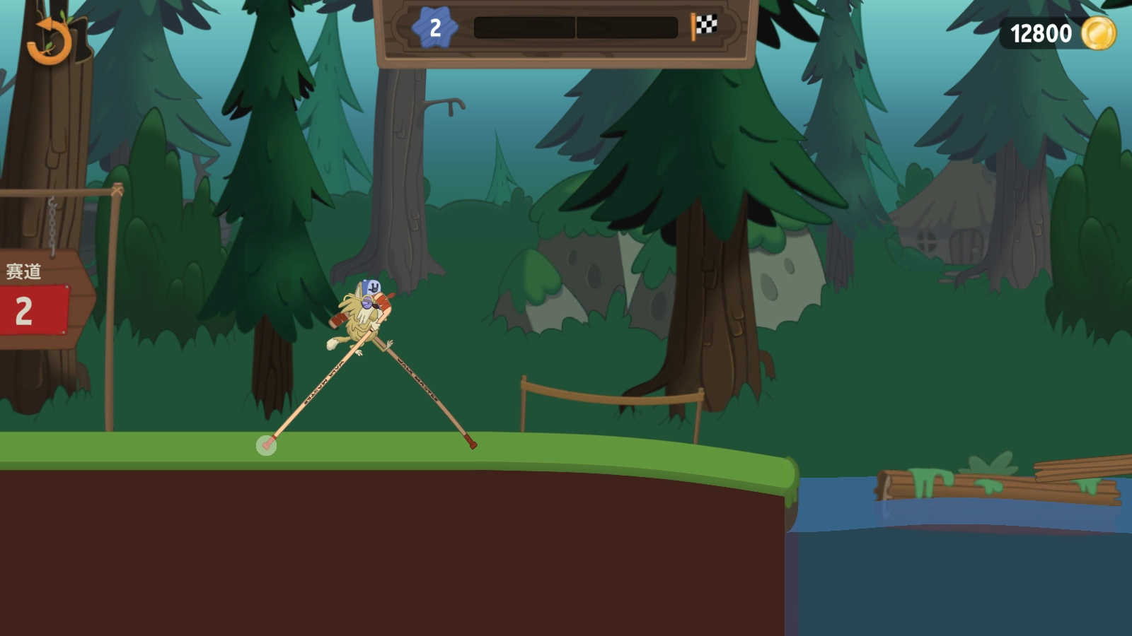 开始挑战后,拖动屏幕就能操控角色的高跷移动。
