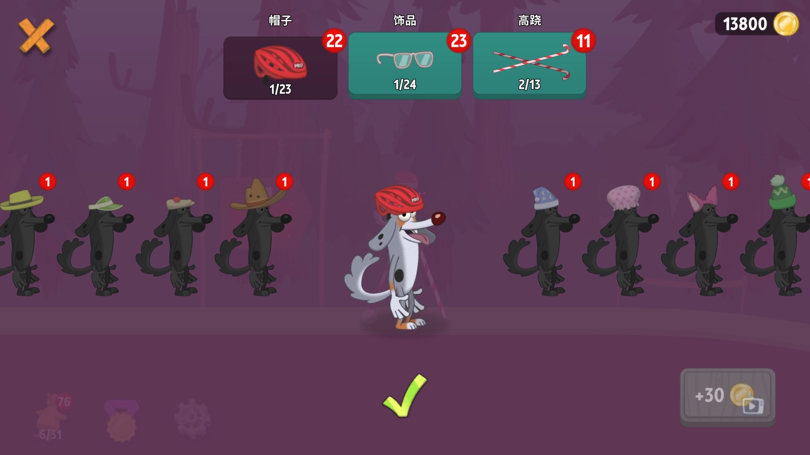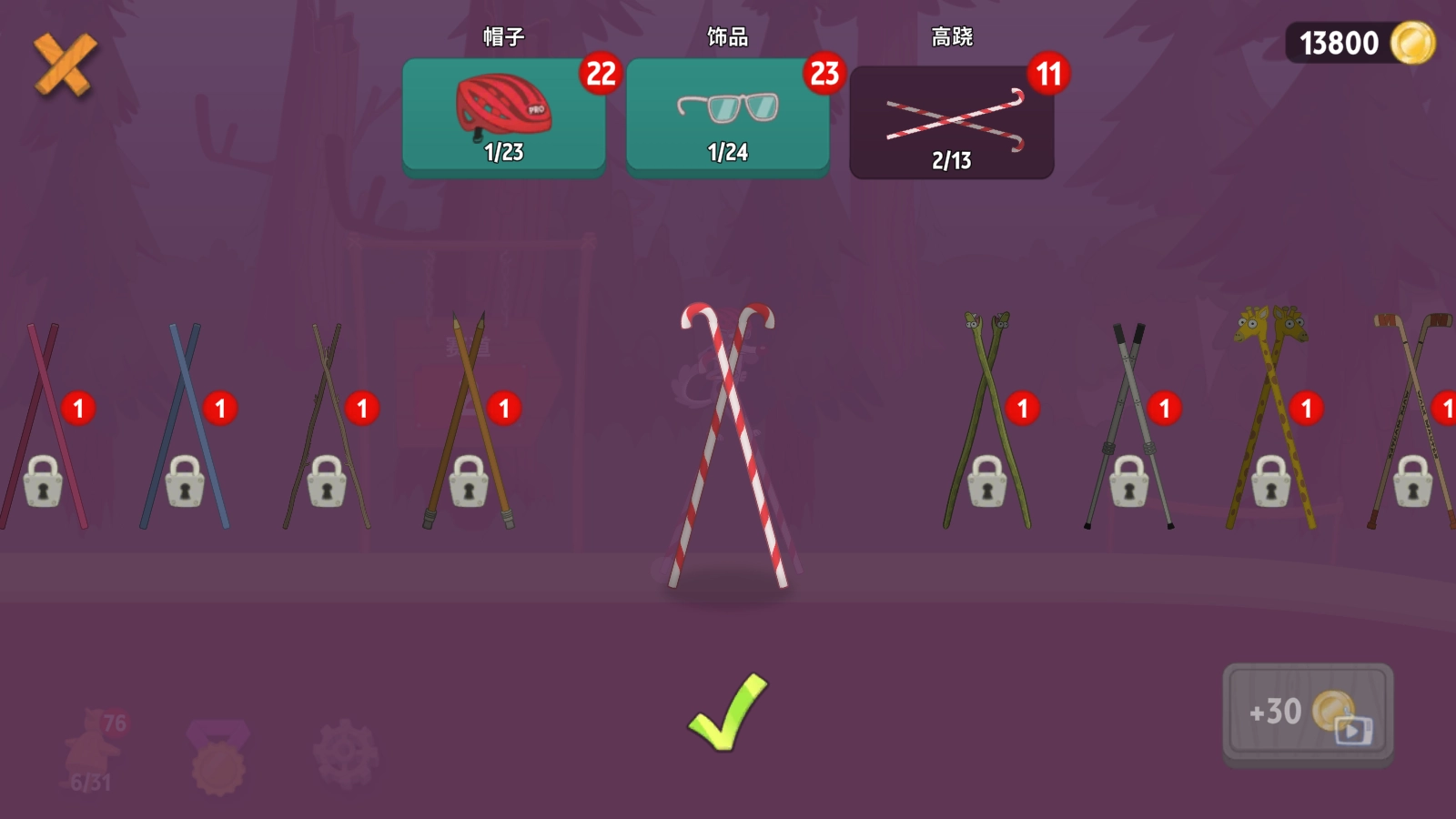 选中特定角色后,即可进入自定义界面,在该界面中能够为角色更换饰品,也可以替换其他类型的高跷。