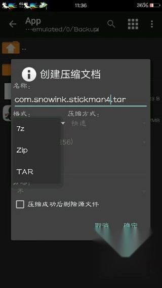 6、使用ZAchiver工具对修改后的data文件进行重命名操作,然后将其压缩为tar格式。