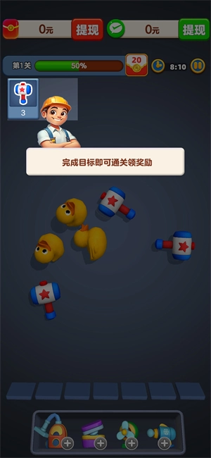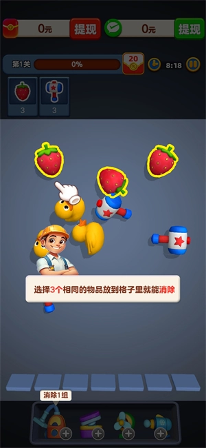 消除物品即可达成目标,达成所有目标便能获取通关奖励。