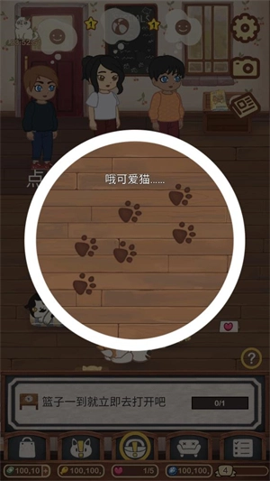 顾客与猫猫互动时可获取爱心,消耗爱心能够开启快递篮子,且每次仅能打开一个快递。