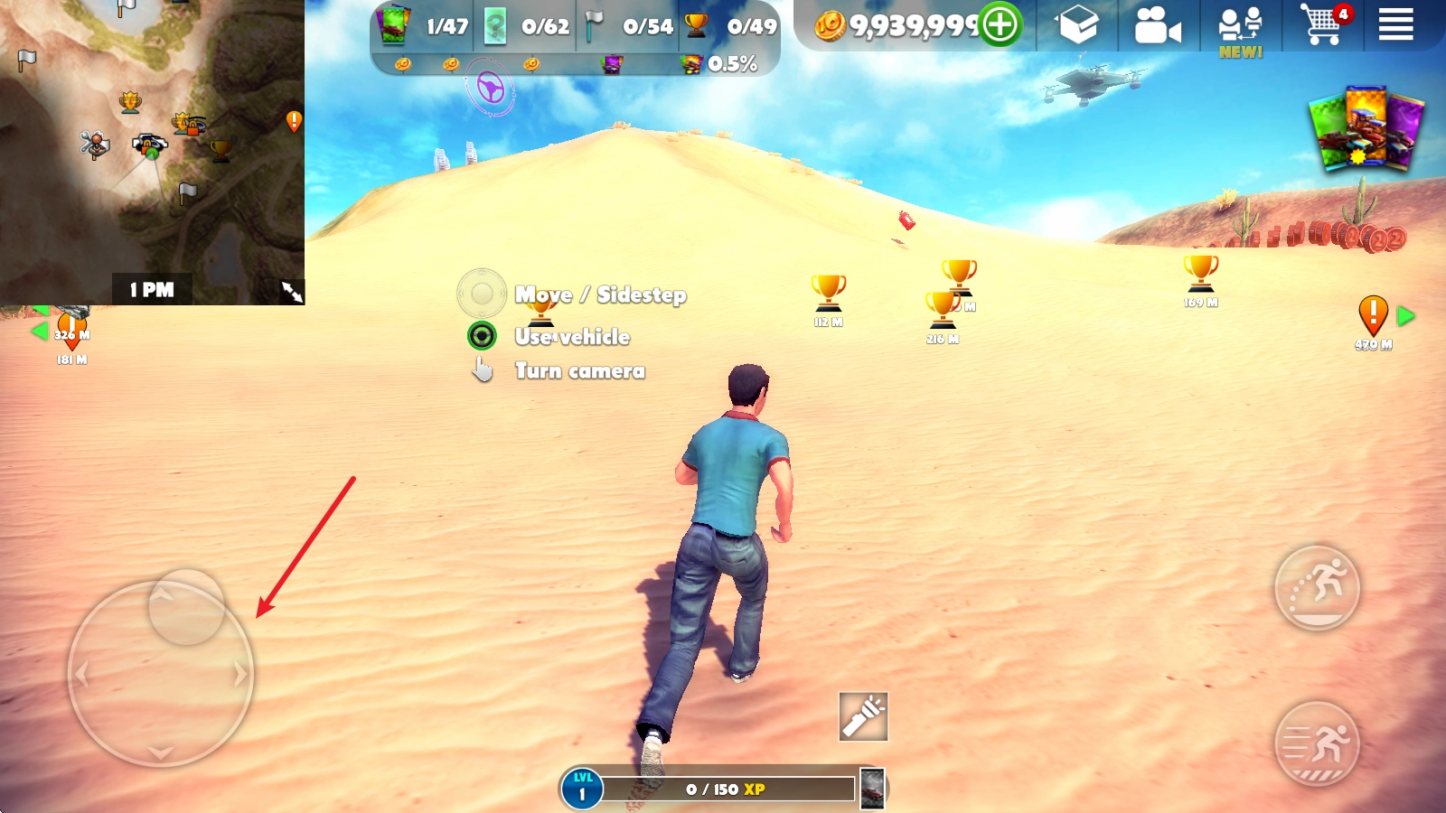游戏中,我们可以通过左侧的摇杆控制人物移动。