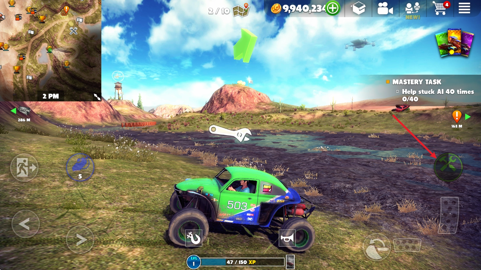 在挑战过程中,我们的车辆会频繁发生碰撞,进而造成损坏,即便点击右侧的修理按钮也无济于事。