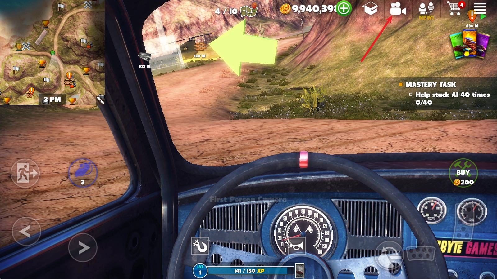 点击右上角的摄像头,还能切换到不同视角来驾驶。