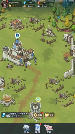 点击升级按钮能够增强主角的属性,还可以提高英雄们的等级。