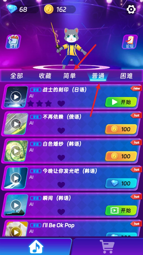 进入游戏后,我们可以挑选一首喜欢的音乐开启自己的挑战。