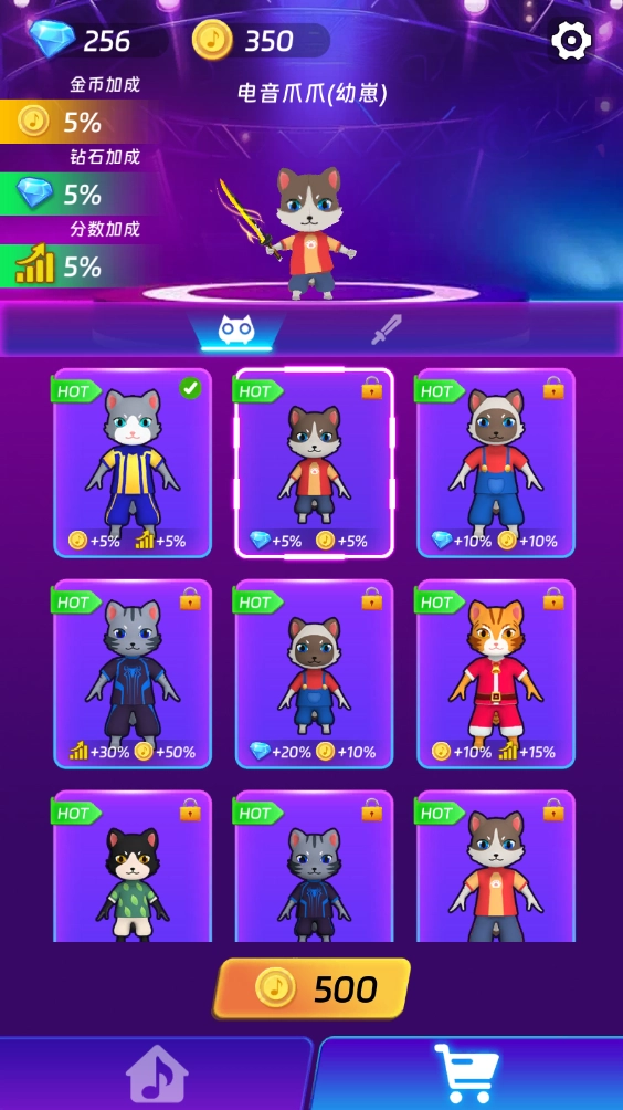 我们还能购买各式各样的猫咪来参与挑战,不同的猫咪会带来不一样的加成效果。