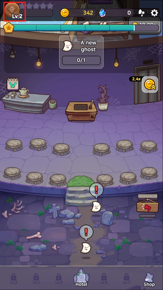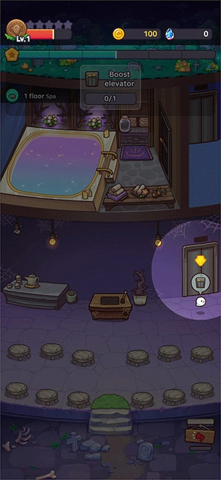 积累到足够资源后,就能升级酒店,解锁进入下一阶段的内容。