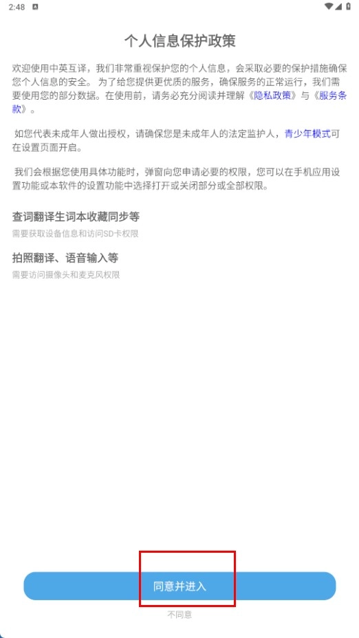 点击【同意并进入】功能按钮,即可进入中英互译软件的主界面。