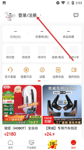 在首页底部找到【我的】按钮并点击,进入个人中心页面后,就能看到“登录/注册”等功能的入口了。