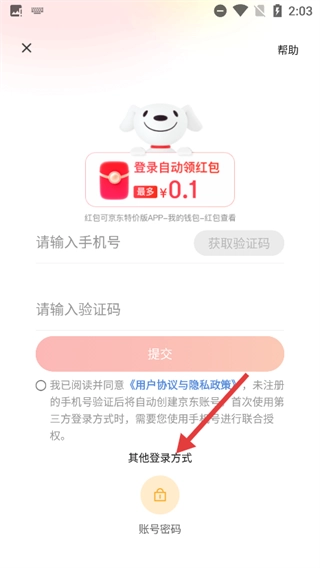 在登录选择页面,点击【其他登录方式】里的【账号密码】选项,即可进入账号密码登录页面。