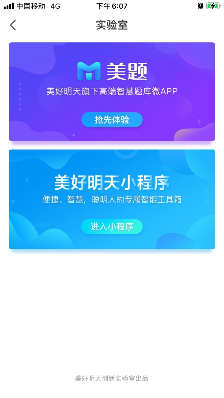 方法三:【我的】- 【实验室】 - 【选择美题卡片】,进入题库功能