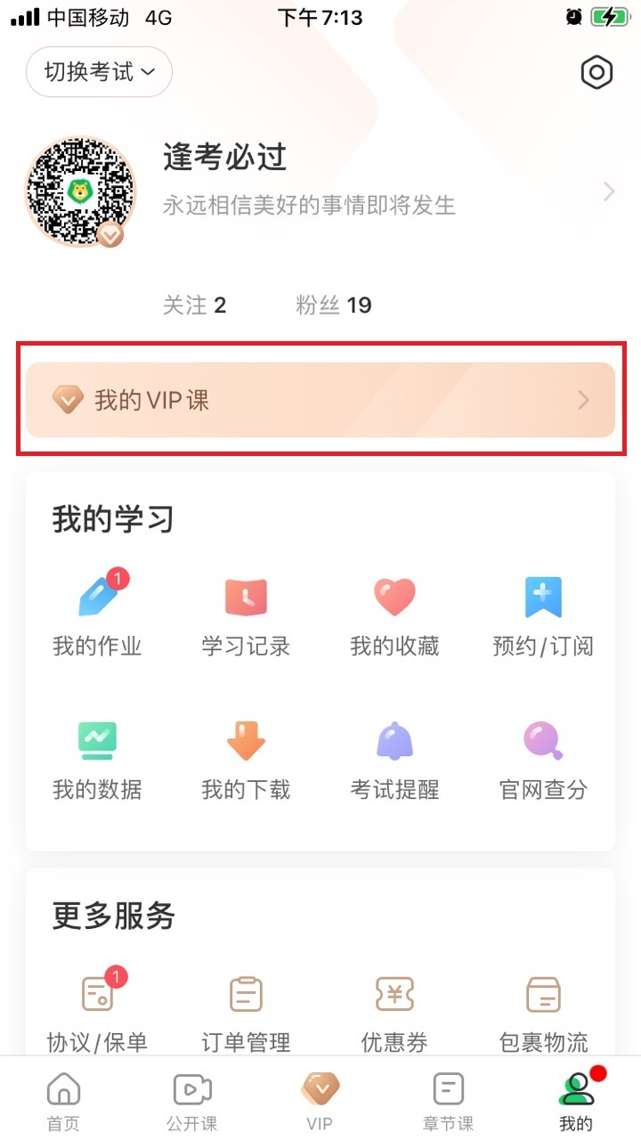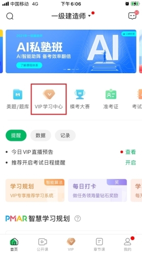 方法1:在【首页】找到【VIP学习中心】的按钮点击进入