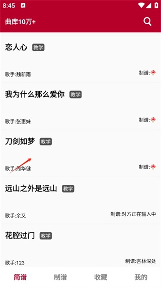 打开软件后,进入简谱页面,从中挑选或者搜索自己所需的曲谱。