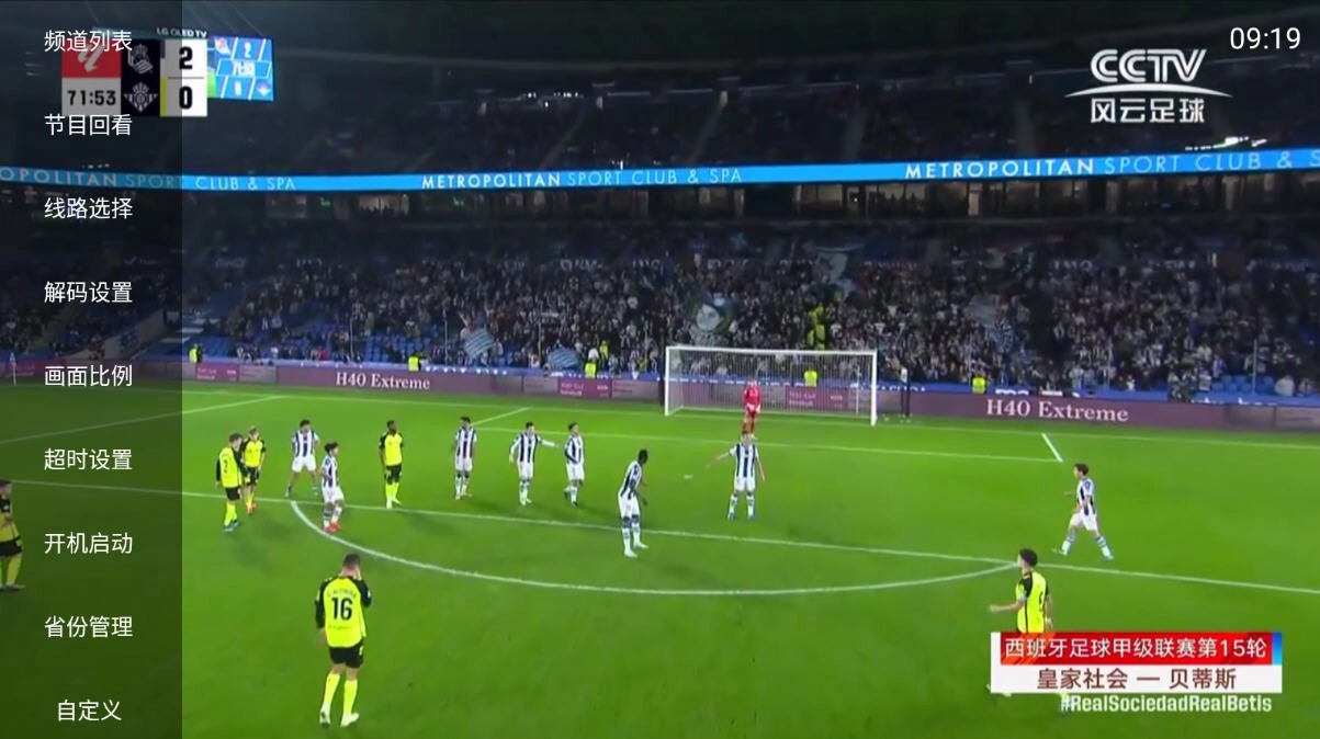 点击屏幕左侧,左侧会呈现出频道列表、节目回看、线路选择、画面比例等板块内容,这里以点击频道列表为例进行说明。