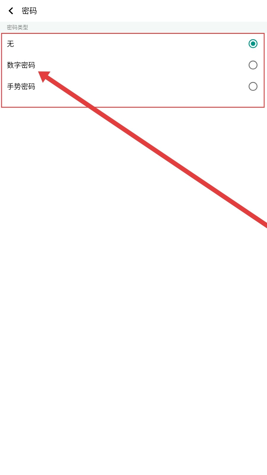 在密码设置界面,点击【数字密码】选项,即可开启数字密码的设置流程。