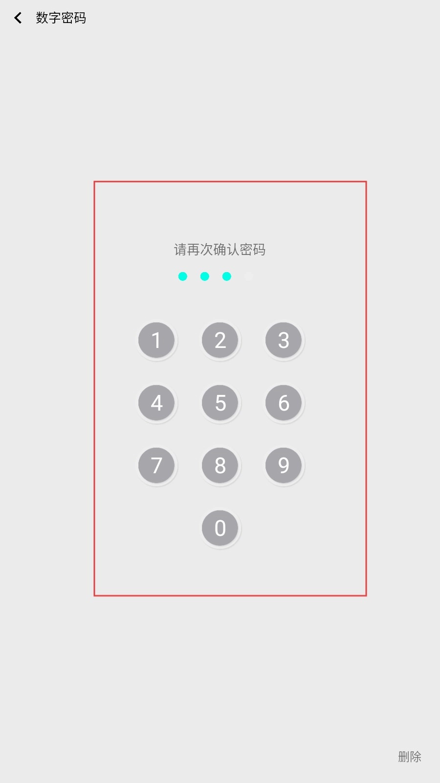 再次输入和之前一致的密码,完成确认步骤,就能顺利完成数字密码的设置。