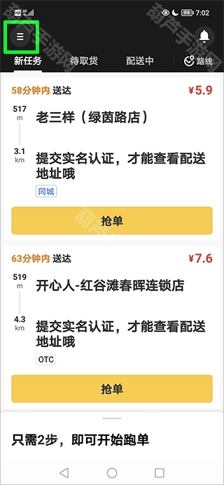 3、之后,用户需要选择并点击“实名认证”选项完成实名认证,完成后才能开启接单流程。