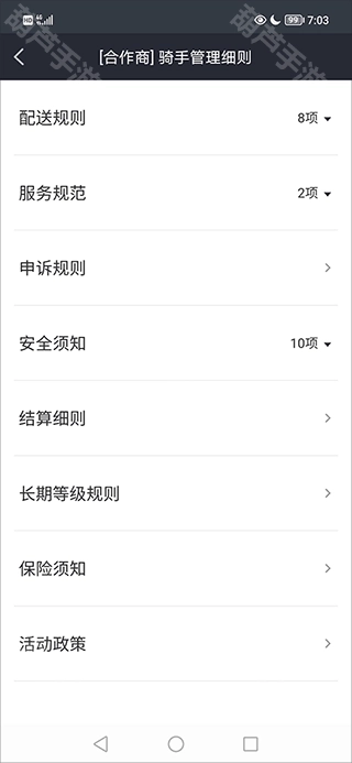 4、最后在“【合作商】骑手管理细则”这一板块,就能够点击申诉规则了。