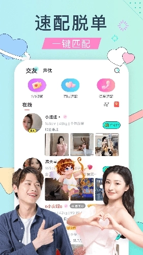 1、用户可以通过多种方式进行在线交友,提供的玩法很多样,可以选择自己喜欢的。