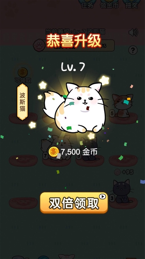 2.当你积累了一定数量的资源后,就得赶紧提升猫咪的等级。等级越高,能获得的利润也就越多。