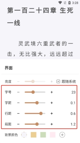 3、在这个界面中,我们可以对字号大小、字距、行距、段距、背景颜色等相关选项进行设置。