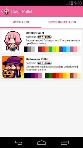 3、dotpict在作品管理方面做得十分细致,你能够清楚地看到作品的名称、色盘、创建时间等各类信息。