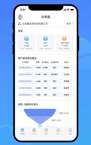 这是为销售打造的专属工作台,支持多维度查看工作进展,便于轻松管理,助力随时掌握全局情况。