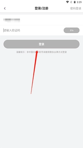2.输入手机号与验证码后,点击登录按钮即可完成账号注册。