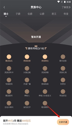3.点击立即开通按钮即可开用会员