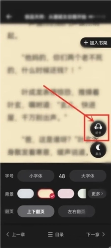 1、打开手机上的软件,进入书籍阅读页面后,点击“听书”按钮。