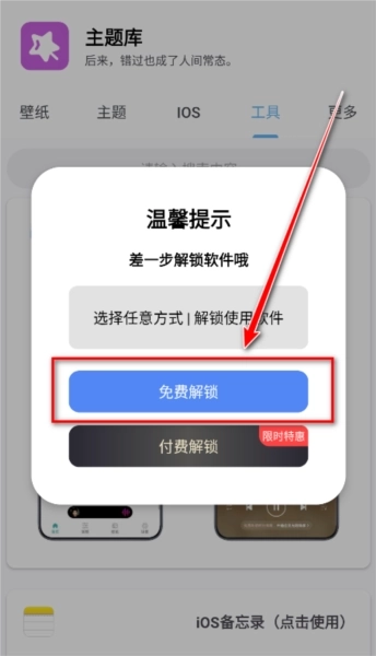 2、点击免费解锁。