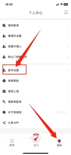 1、进入后,首先点击右下角“我的”,下拉页面找到“账号设置”,点击进入;