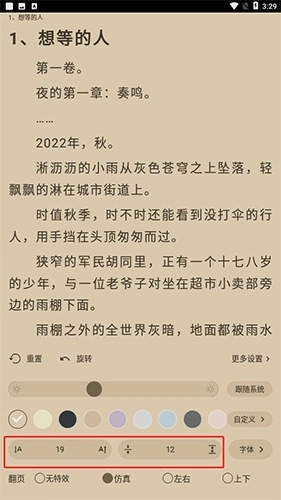 1、进入阅读页面,点击空白处,然后点击“设置”选项。