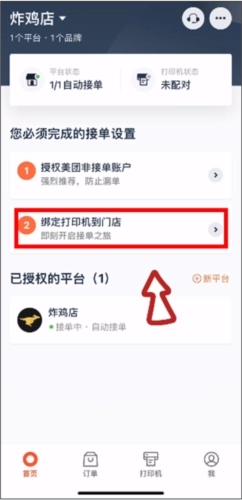 4、绑定成功后即可进入软件中,点击“绑定打印机到门店”;