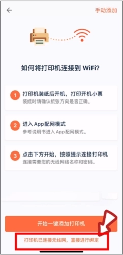 6、将门店中的打印机连接到WiFi后,点击“打印机已连接无线网,直接进行绑定”;